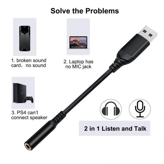2 in 1 USB headphone and microphone audio adapter adds a 3.5mm aux TRRS port (integrated mic-in and audio out interface) to your gaming computer, supports listening and speaking, line control (volume control, pause and play).