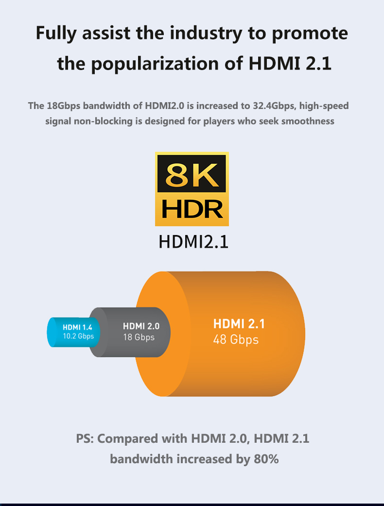 4. Support 48Gbps and 8K @ 60Hz performance, in line with HDMI 2.1 standard.